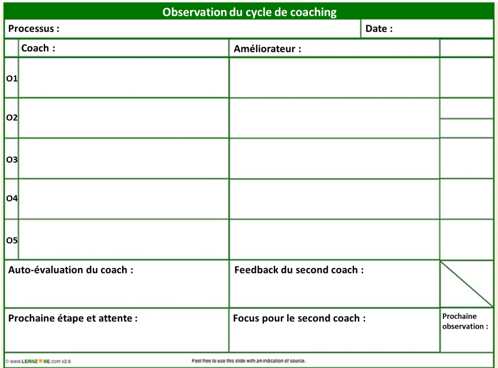 Bien sûr, en conséquence, coacher un employé d’une même chaine ne suffisait plus. Denise avait demandé à ses chefs d’équipe Joe et Michael de commencer également des cycles de coaching avec leurs chefs d’équipe. Désormais, Denise observait régulièrement ces cycles de coaching.